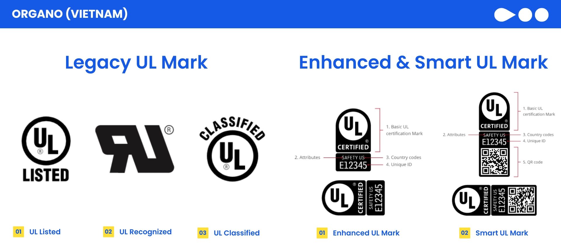 – Smart UL Mark: tích hợp mã QR liên kết đến trang sản phẩm trên UL Product iQ, giúp người dùng tra cứu chứng chỉ, hướng dẫn kỹ thuật, hình ảnh và video sản phẩm. Các nhãn UL mới giúp chống giả mạo hiệu quả và tăng độ minh bạch trong quản lý chứng nhận toàn cầu.